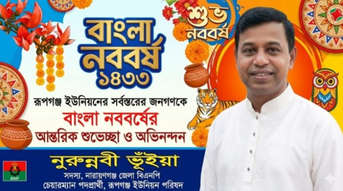 বাংলা নববর্ষ ১৪৩৩ উপলক্ষে রুপগঞ্জ ইউনিয়নের বাসিন্দাদের আন্তরিক শুভেচ্ছা ও অভিনন্দন জানিয়েছেন সদস্য,নারায়ণগঞ্জ জেলা বিএনপি ও রুপগঞ্জ ইউনিয়ন পরিষদের চেয়ারম্যান পদপ্রার্থী নুরুন্নবী ভূঁইয়া। জনগণের অধিকার ও সামাজিক সাম্যের কথা বিস্তারিত...